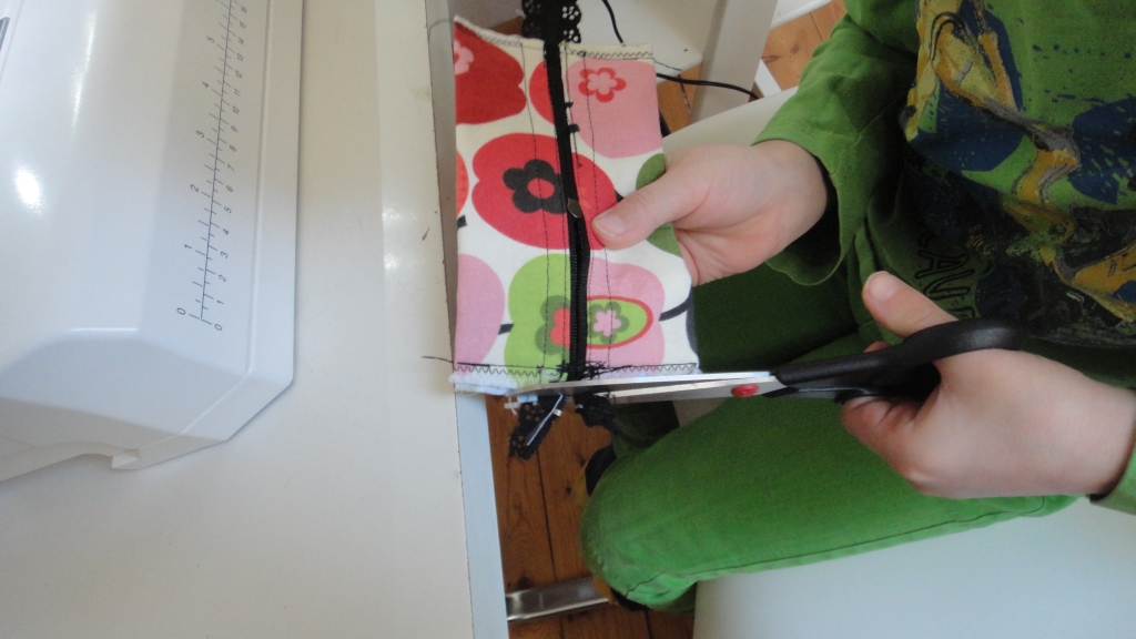 Noch schnell abschneiden und dann die Ecken nähen ...